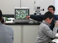 海岸の砂の中から、生物の殻や地層中から洗い出された微化石を拾い出し、電子顕微鏡などを用いて観察します。
