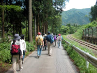 足羽川に沿って見られる恐竜時代の地層などを観察します。