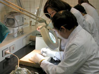 恐竜化石発掘現場で採集した化石のクリーニング実習と鑑定などを行います。