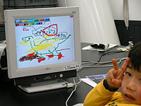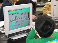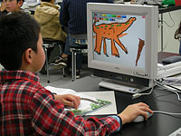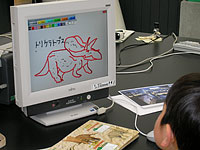 パソコンで恐竜の絵を描いて、新しい年度の恐竜カレンダーを親子で作ります。