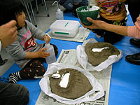 足跡化石のように、粘土等につけた自分の足跡の石膏型をつくってみましょう。このような足型からは、どのようなことが分かるのでしょうか。いっしょに考えてみましょう。