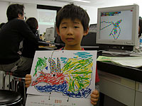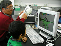 パソコンで恐竜の絵を描いて親子で新しい年度の恐竜カレンダーをつくります。