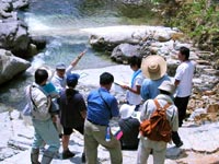 野外での岩石・化石・地層など教材収集や授業での活用の仕方を学びます。