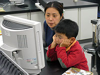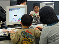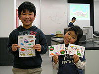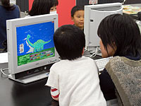 - パソコンで恐竜の絵を貼ったり文字を組み合わせて年賀状を親子でつくります。