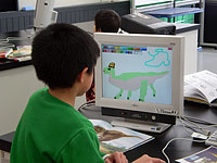 - パソコンで恐竜の絵を描いて親子で新しい年度の恐竜カレンダーをつくります。