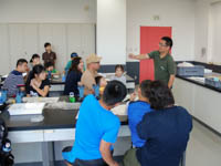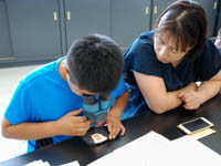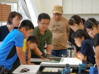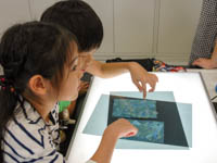 - 偏光板(へんこうばん)や顕微鏡(けんびきょう)などを使って、石のつくりや特徴(とくちょう)を一緒にしらべてみましょう。
