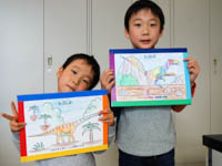 恐竜のぬり絵がパズルになります。親子でつくって楽しみましょう。