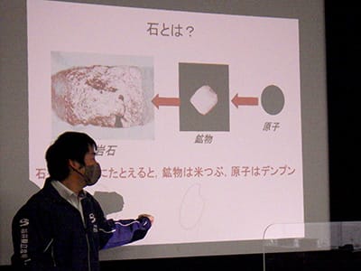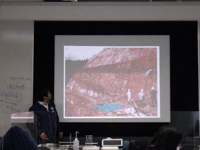 - 化石が見つかる石は砂や泥などからできています。その砂や泥は粒の大きさの違いで分けられるのですが、誰でも見分けられる表を作って、恐竜化石発掘現場の石を一緒に調べてみましょう。