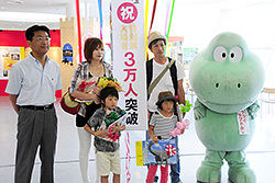 当館でただいま開催しています2014年度特別展「スペイン 奇跡の恐竜たち」は、本日3万人目の来場者をお迎えいたしました。記念すべき3万人目となったのは、奈良県王寺町からお越しいただいた北川さんご家族です。