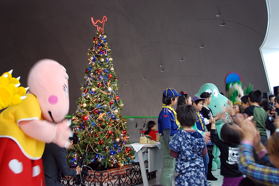 「プロジェクト・カマラサウルス」のプレイベントとしてただいま「カマラサウルスを見に行こう!」を開催中です。この一環として、大きなツリーを飾り、イルミネーションを施しました。この点灯式を本日11月18日㈰、とりおこないました。
