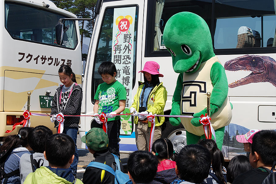 第1便の出発式には、申込みいただいた一般のお客様29名、勝山市立鹿谷小学校3年生から6年生までの26名、さらに勝山市南保育園年長さん親子20名の皆さんが参加しました。