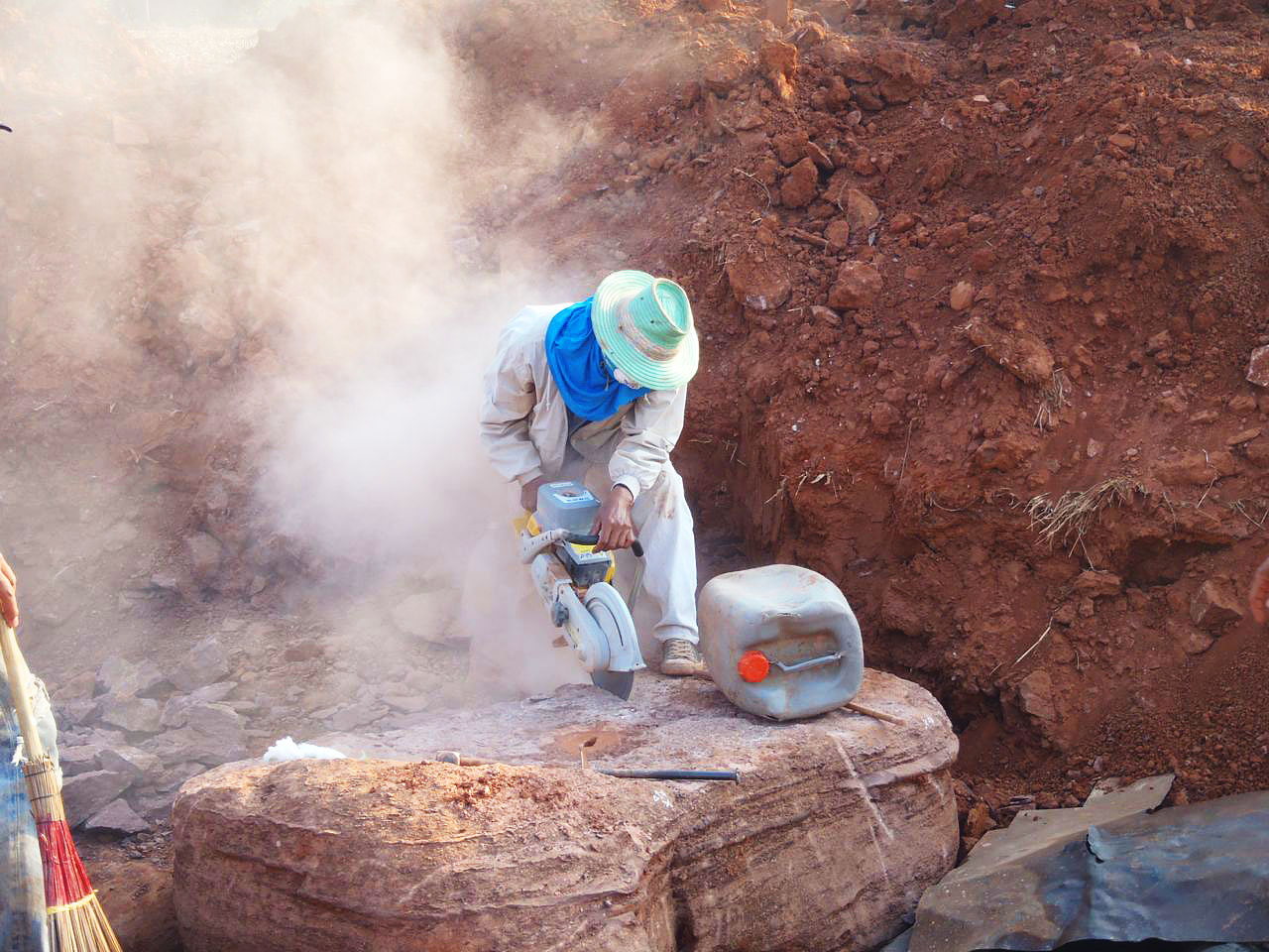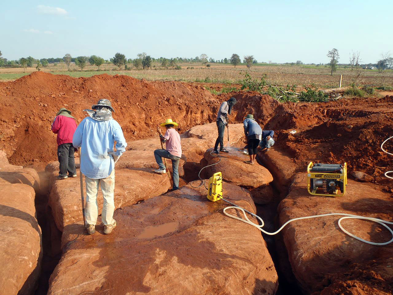 一連の作業は、恐竜博物館の先発隊と現地研究所のスタッフに加え、現地作業員あわせて総勢30名ほどで行いました。現地作業員の多くは日タイ恐竜プロジェクトの経験者で、意思の疎通もうまくいき、スピーディかつスムーズに作業を進めることができました。こうした状況すべてが、過去5年間の日タイ両国スタッフの苦労の結晶だと思うと感慨深いものがあります。2月2日からは後発隊も合流し、さらにペースがあがってきました。このプロジェクトでいったいどんな新しい発見ができるか、私たちも非常に楽しみです。皆さんもぜひご期待ください!