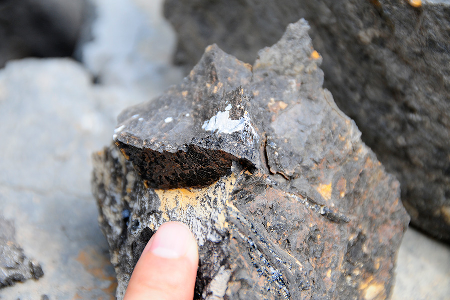さてハンマー隊のみなさんも、以前より大分人数が増えていますね。そして楽しそうです。理由は、化石がたくさん出ているから。「当たり」の層準に来たようで、発見リストは多くの標本で埋まっていました。今日の主役はカメ化石。大量に出ていました。中には、ひとつ発見して石を半分にしようとしたらその面にも発見して…を繰り返して、大きい石のまま困った…という隊員も。私もそんな石に巡り会いたかったです。