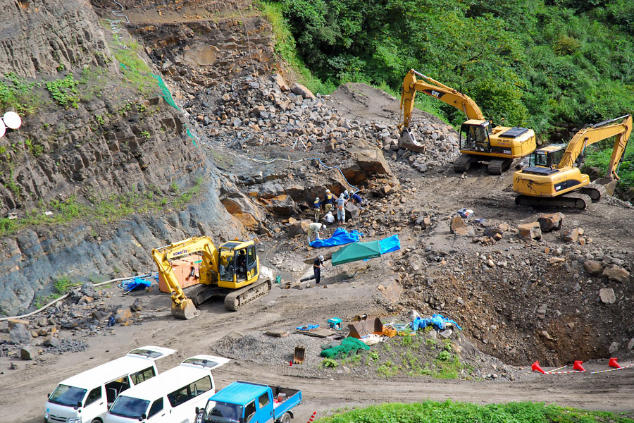 迷走していた台風5号が昨日ようやく北上して、現場に雨をもたらしました。珍しく福井県をかすめていった台風でした。台風一過で今日は曇り空。涼しいといえば涼しいのですが、湿度はかなり高く、しかも足元はドロドロ。作業環境は良くはありません。そんな発掘現場の様子をレポートしていきましょう。