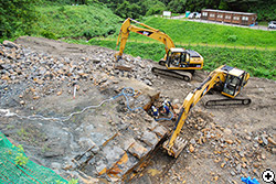 さて、ハンマー隊の様子です。前線と違って全身水浸しになることもなく、心地いい風も吹いて、くもりとはいえ明るさも十分で今日はいい状況です。