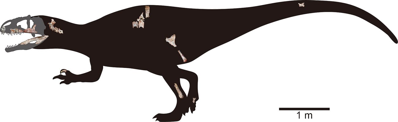 一連の化石の形態を他の獣脚類と比較したところ、アロサウルス上科に共通する特徴が数多く認められました。中でも、頸椎の椎体に2つの含気孔が発達する点や、脛骨における距骨との関節面の上縁がやや不明瞭である点などは、同上科の中でもカルカロドントサウルス類に特有のものです。さらに、頬骨の下縁部が真っ直ぐである点や、上角骨の外側稜の後方に凹みが存在する点など、他の近縁種に見られない特徴が数多く認められることから、新属新種であると結論付けられ、シャムラプトル・スワティと命名されました。