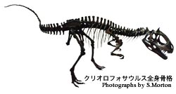 南極大陸のカークパトリック山から発見された肉食恐竜です。アロサウルスやフクイラプトルに近い種類の肉食恐竜ですが、頭には『とさか』がある風変わりなジュラ紀前期の恐竜です。クリオロフォサウルスの復元骨格は、日本ではじめての公開となります。