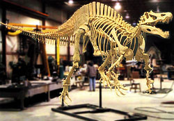 スピノサウルス科の恐竜はワニのような頭を持ち、さらに背中には扇のような突起を持つものがいます。獣脚類のなかでも、風変わりな姿をしたこの恐竜たちは、十分な化石資料がなかったために長い間謎につつまれていました。最近の研究によってそのユニークな姿が明らかとなり、アジアからもこの仲間の化石が見つかってきました。バリオニクスとスコミムスの全身骨格を元に、スピノサウルス科の魅力を紹介します。